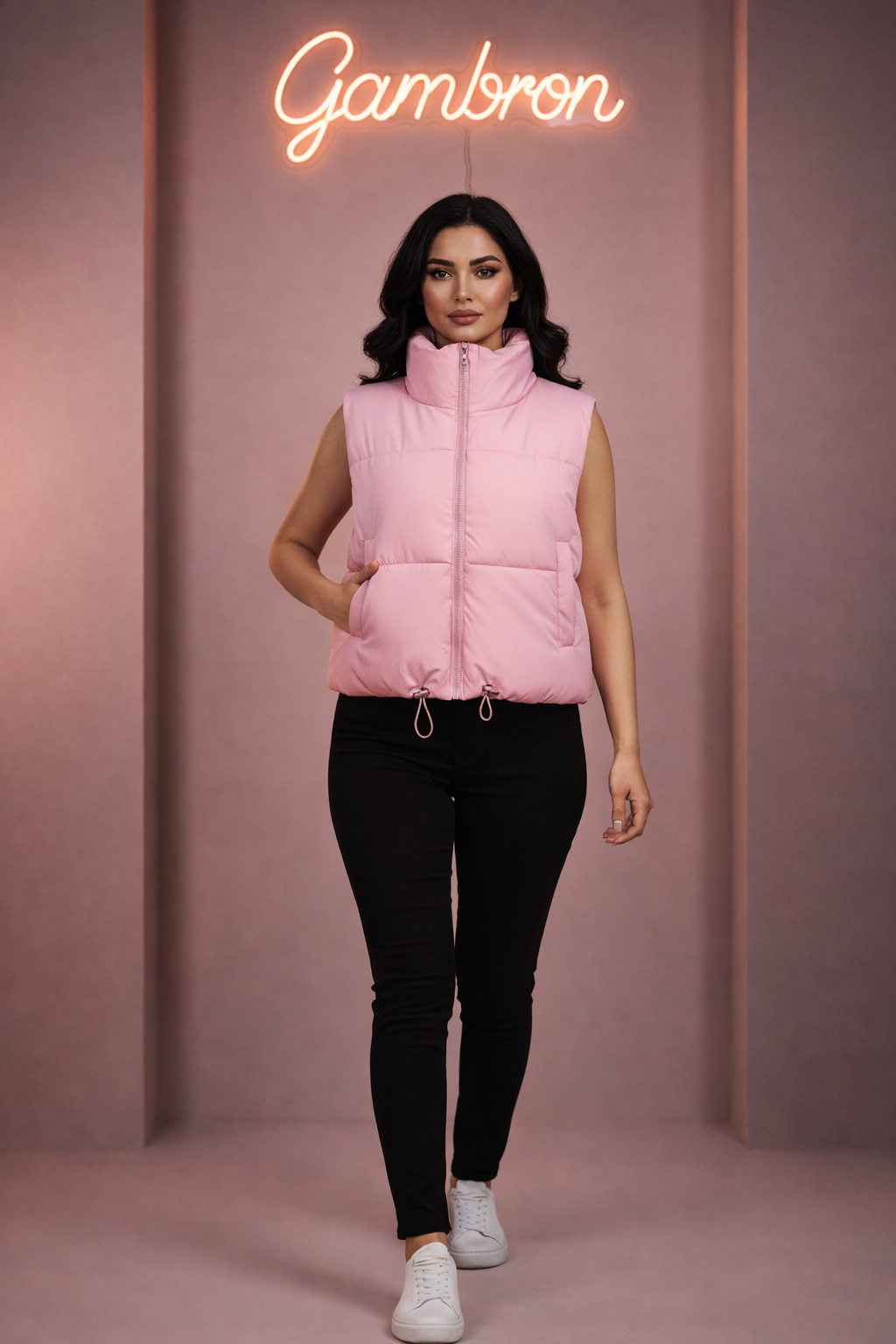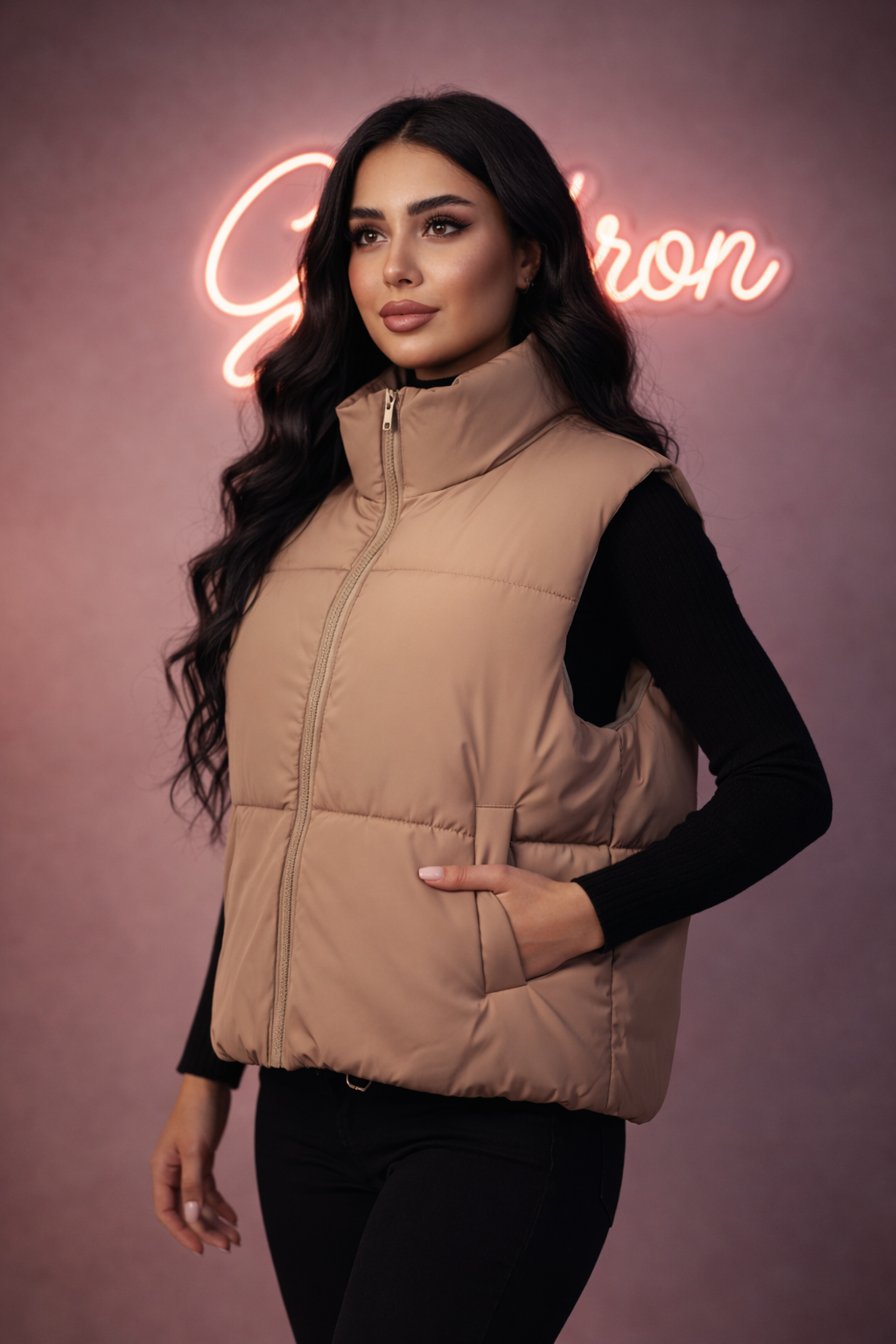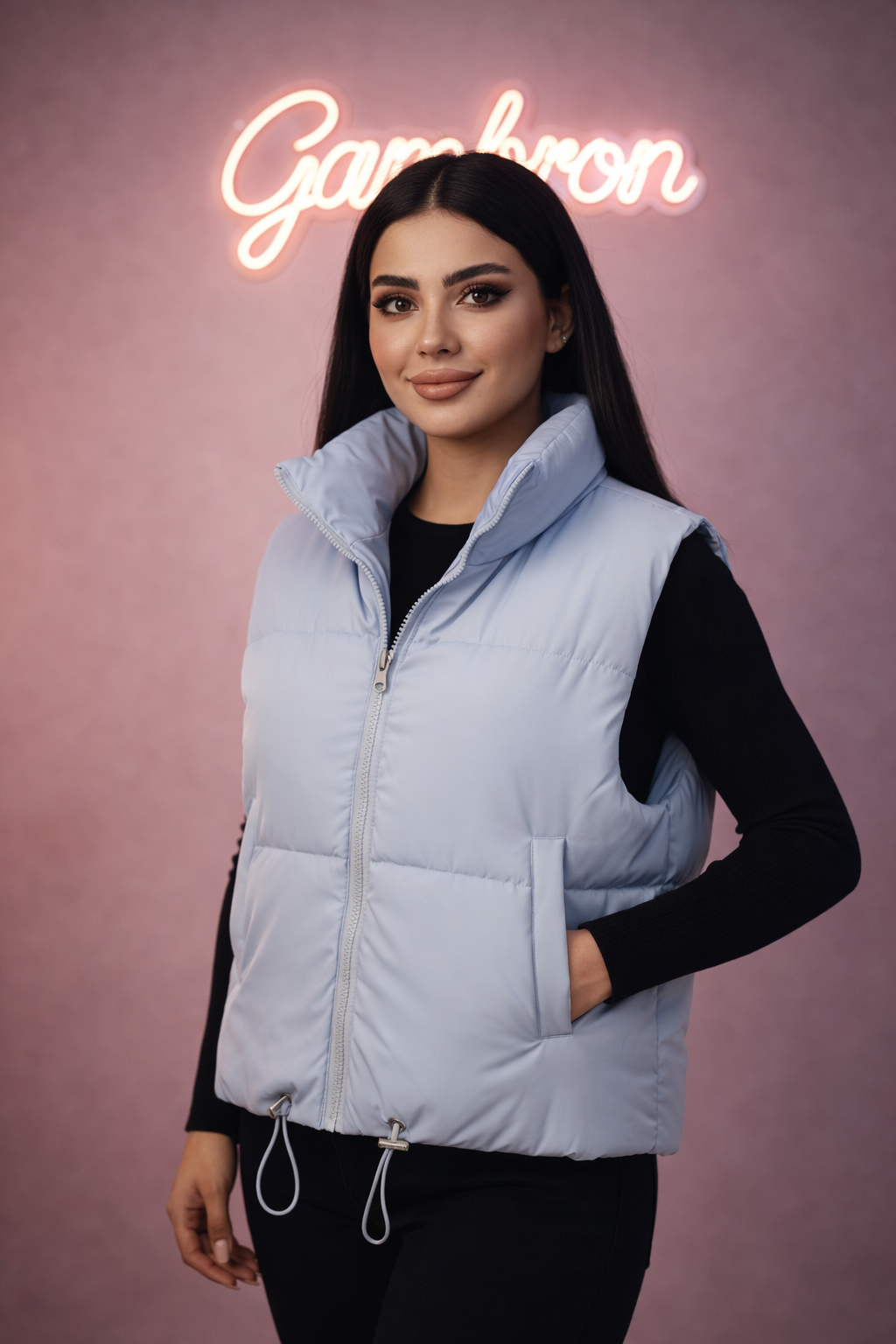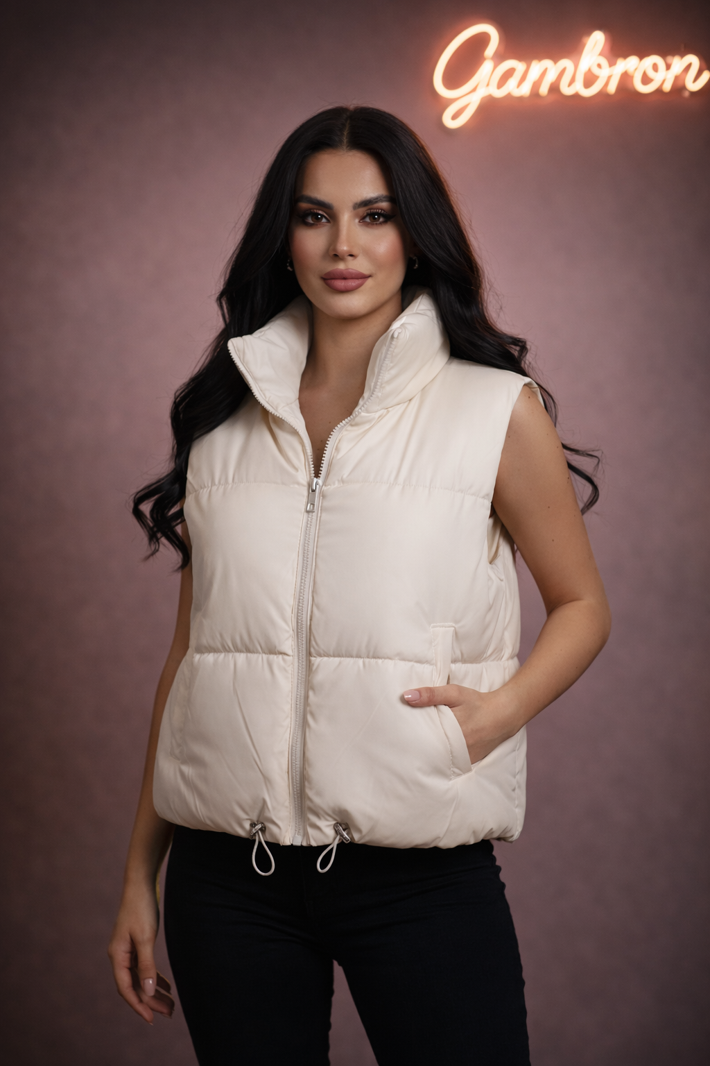 پافر زنانه ساده فری سایز، در قسمت پایین دارای کش برای تنظیم قد ، قد ۵۵ سانتی متر.