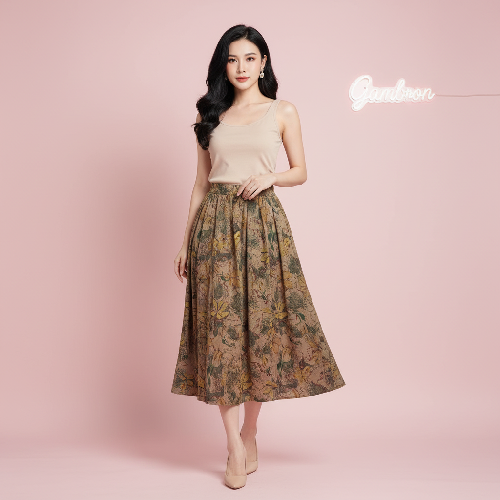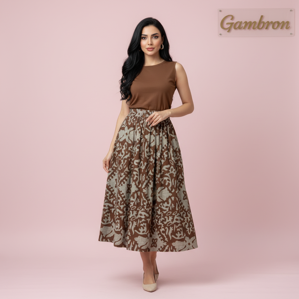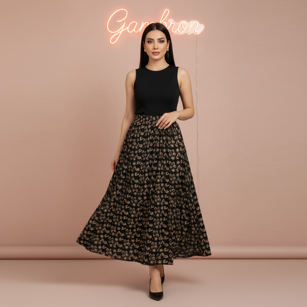 دامن کره ای طرح دار.قد ۹۰. جیب دار. به هیچ عنوان آبرفت ندارد.